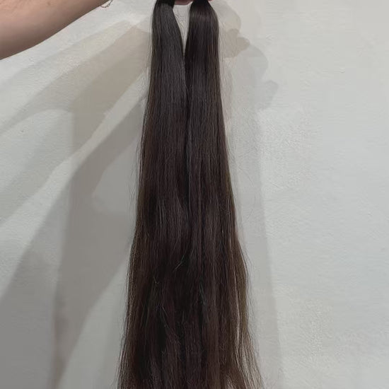 To assist you in making the best selection for you and your clients, you can reference our classic collection and the grams sold per pack. Our classic 18-22" packs come with 50G of hair per pack and our 24"+ packs come with 60G per pack.